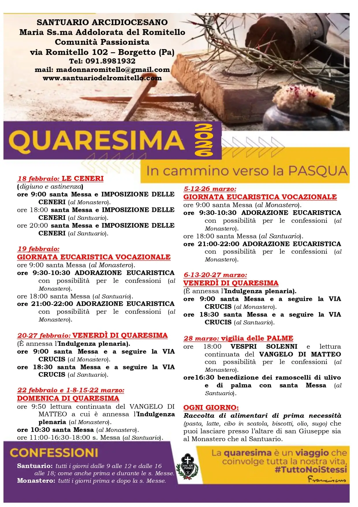 Le sante Messe delle ore 16:30 e 18:00 sono sospese, poichè la comunità Passionista si unirà alla Chiesa Monrealese per la chiusura dell’Anno Giubilare in Cattedrale.