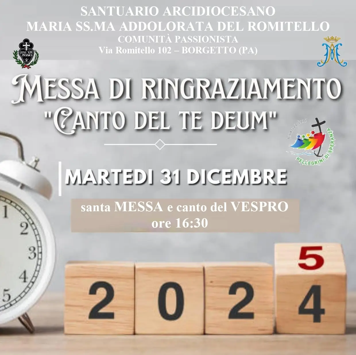 ore 16:30 SANTA MESSA SOLENNE, esposizione del SS.MO SACRAMENTO, VESPRI e canto del “TE DEUM” (al Santuario).
